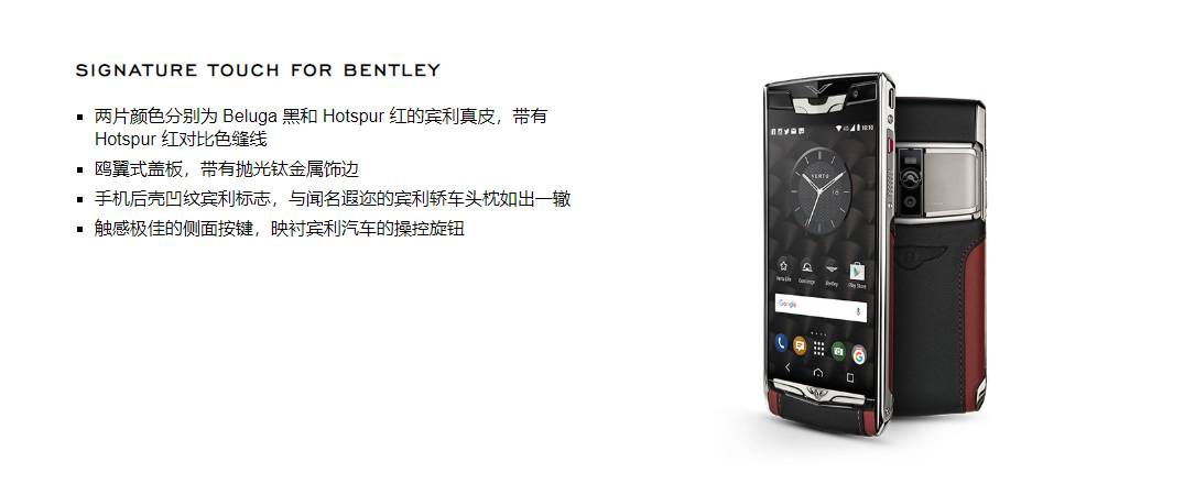 手机采用两部分的 Bentley 皮革、撞色缝线和背部凹刻 Bentley 标志,其设计与 Bentley 经典头靠相呼应,侧边按键上的立体滚花则取 Bentley 操作旋钮为灵感。如果这还不能满足您的需求,该版本手机还推出 Made to Order 定制臻品服务,您可从中自行挑选 Bentley 皮革和缝线颜色。